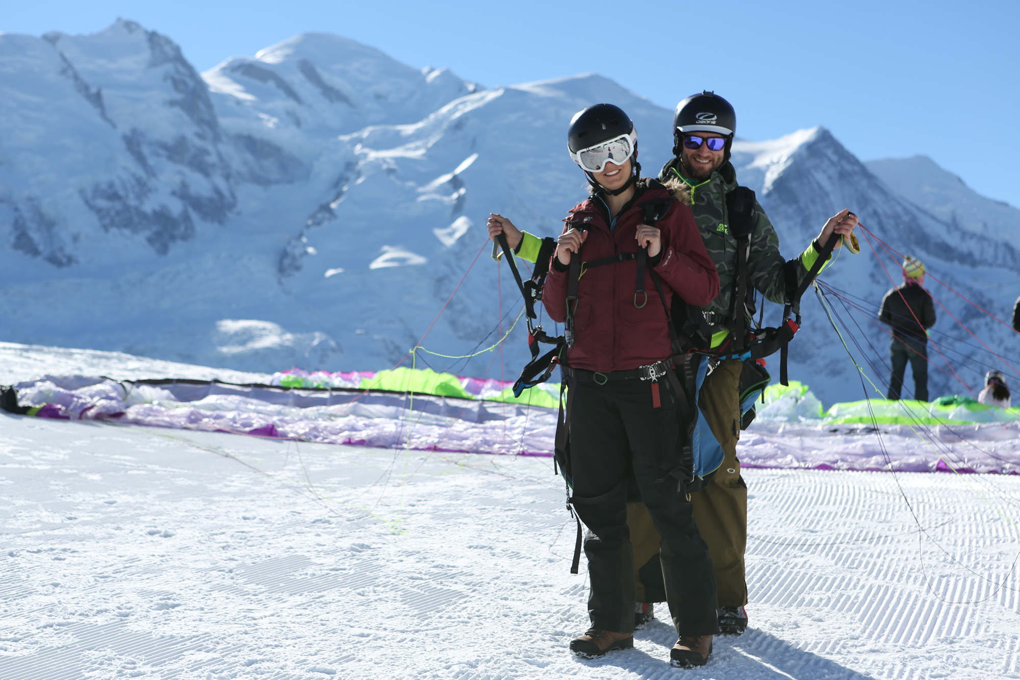 The flight equipment (tandem paraglider), helmet and your pilot's smile.